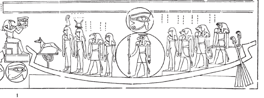 A Thoth and Horus with a scarab-sun in the solar bark