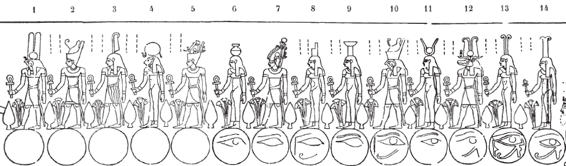 - The m and eye-sign appear to have swapped places, as one would expect an adjective or stative verb to modify the noun here. Similar perturbed sign order occurs later on in this text (šsr=sn m r’=sn).↩︎For the reading, see Kurth 2004, p. 26 (citing a similar passage in Edfou VIII, 109, 2).↩︎